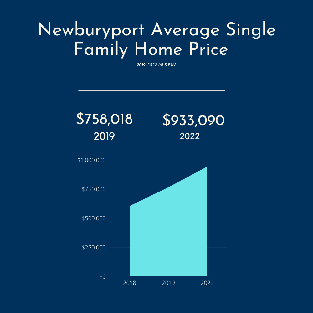 Indeed, per the data from the Multiple listing service, the average price of a single-family home in Newburyport over the past year is $933,090. Yet, in 2019, and pre-covid, the average single family home price in Newburyport was significantly lower at $758,018.