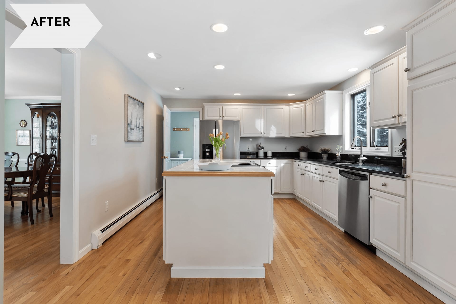 Sometimes owners have more time to prepare a home for sale and can take on larger projects. An example of a home Alissa Christie recently sold in Newburyport involved over three months of preparation with seller clients who were moving to a different part of the country. The sellers worked with contractors recommended by Alissa to achieve their goals. Some simple updates to the kitchen, including decluttering, replacing a light fixture, a deep clean and refinishing of the hardwood floors where older, cracked tiles were in place, gave the home a refreshing and updated look to help it sell for the highest price.